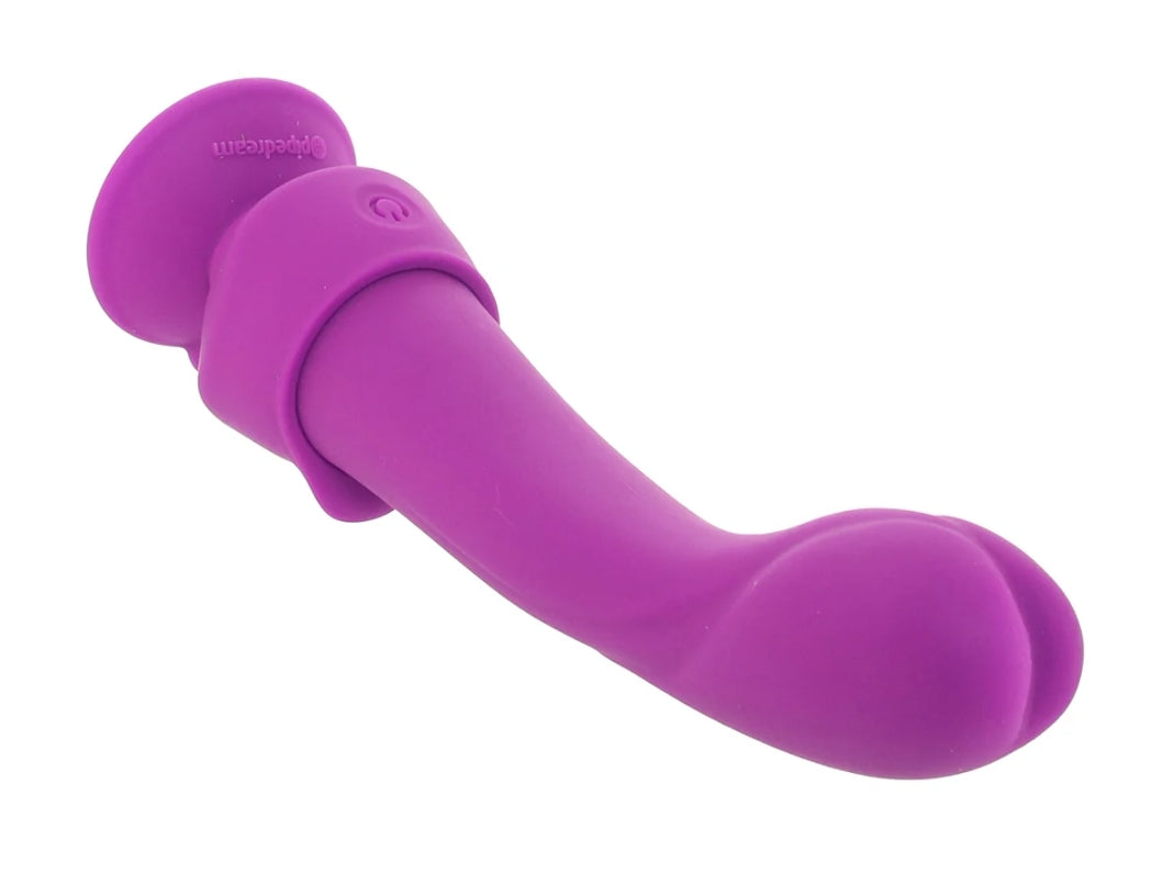 A button on the base powers up and cycles through G's ten rumbly vibration modes (it works in or out of the suction cup), or you can use the mini remote.