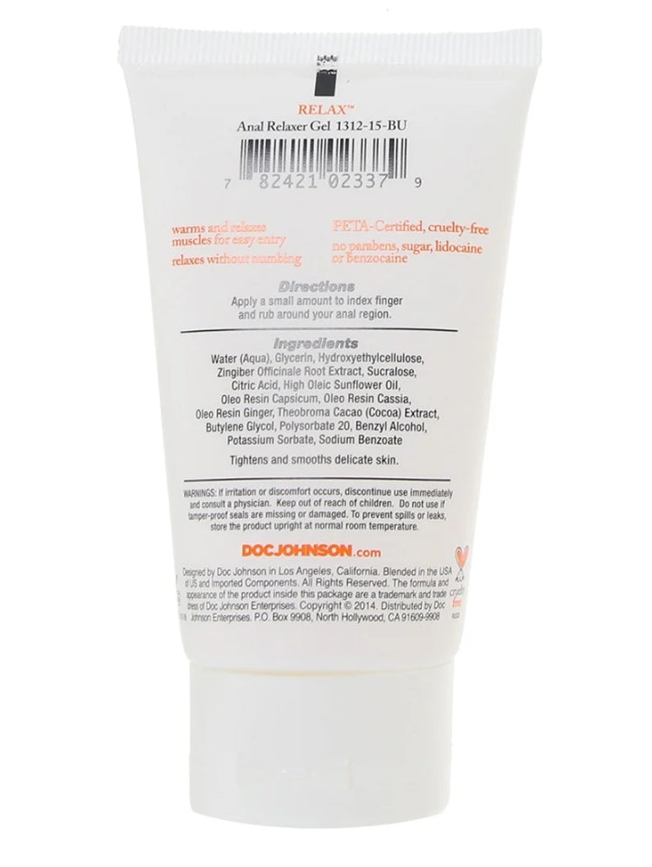 Naturally warming, loosening and softening the anal opening in readiness for penetration and play, Doc Johnson's Relax is a gentle, wonderfully drug free alternative to the typical desensitizing anal product. Backdoor experimenters can prep the area together if desired, a small amount needs simply to be applied to a finger and rubbed over the anal region. For best results, massage for a few moments to promote full absorption.