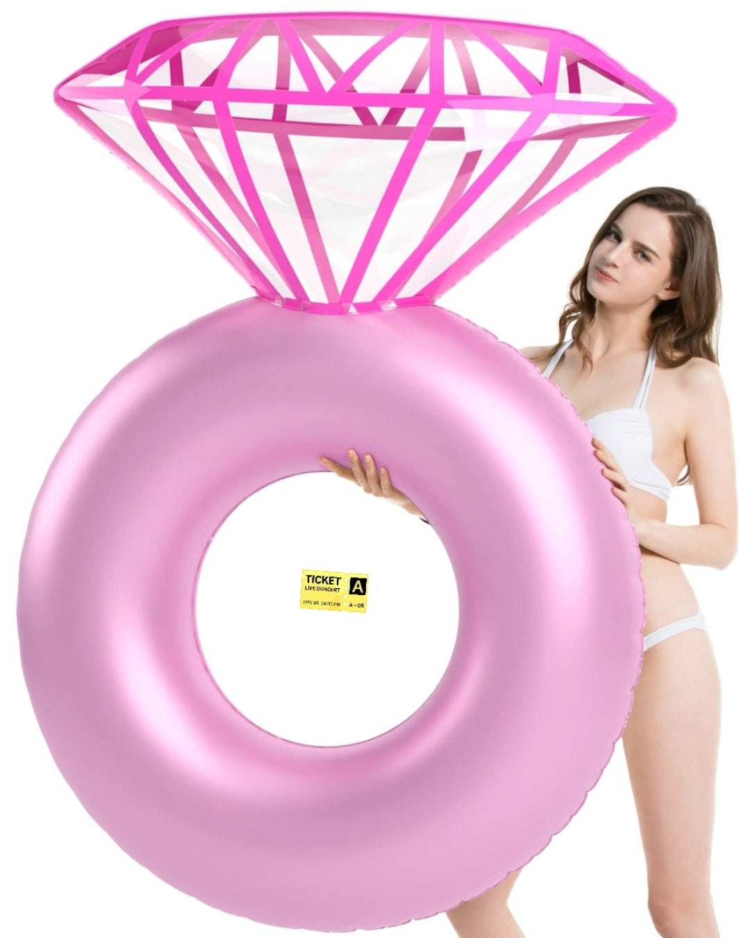 - Giant Inflatable Diamond Engagement Ring Pool Float. Big: Approx. 61in * 42in( Fully inflated )