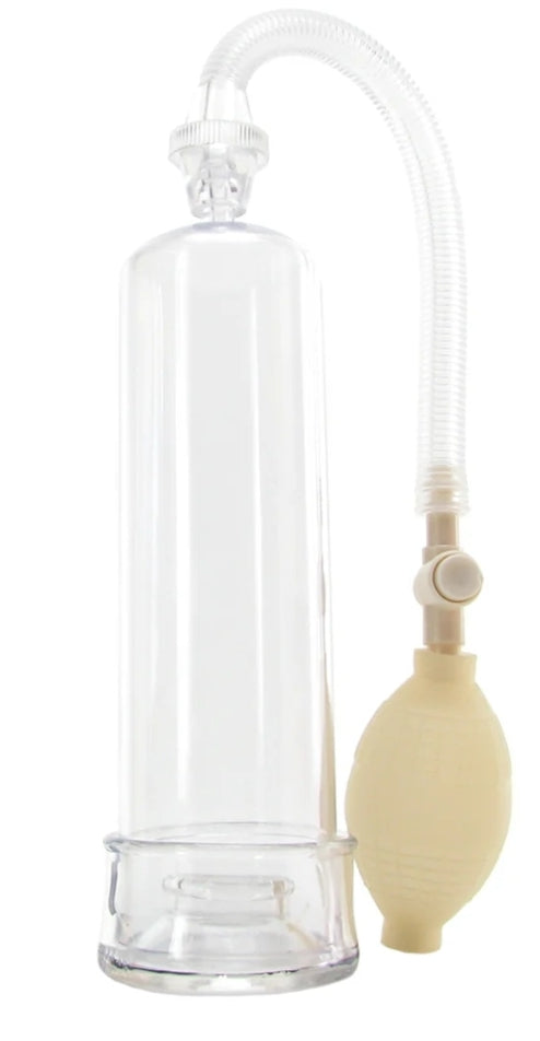 Pumps can be a bit intimidating when just starting out with this type of enhancement tool, but the Beginner's Power Pump from Pipedream eases inhibitions with its simple, ultra user friendly design. A classic cylindrical chamber contains all the gentle yet intense suction, and a soft, stretchy jelly sleeve fits around the entire opening to cushion and protects as you pump.