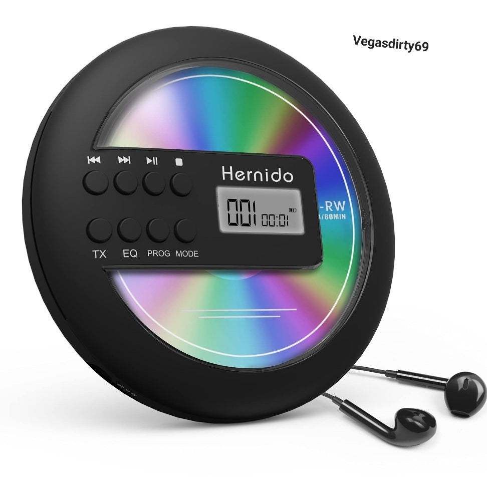 Rechargeable Portable CD Player for Car, Hernido Discman with FM Transmitter, 20 Hours Playtime Personal Compact Disc CD Player, USB MP3 Player with Headphones, Anti-Skip & Resume Playback.